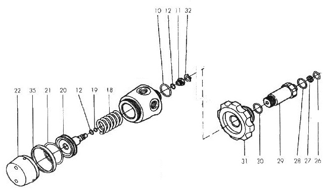 Kolbenkappe, Links der Düsenkörper
